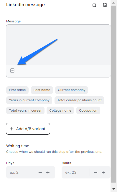 - For email messages, choose where to insert your image or GIF. For LinkedIn messages and InMails, Higher Ranking will place your personalized images and GIFs at the bottom of the message.