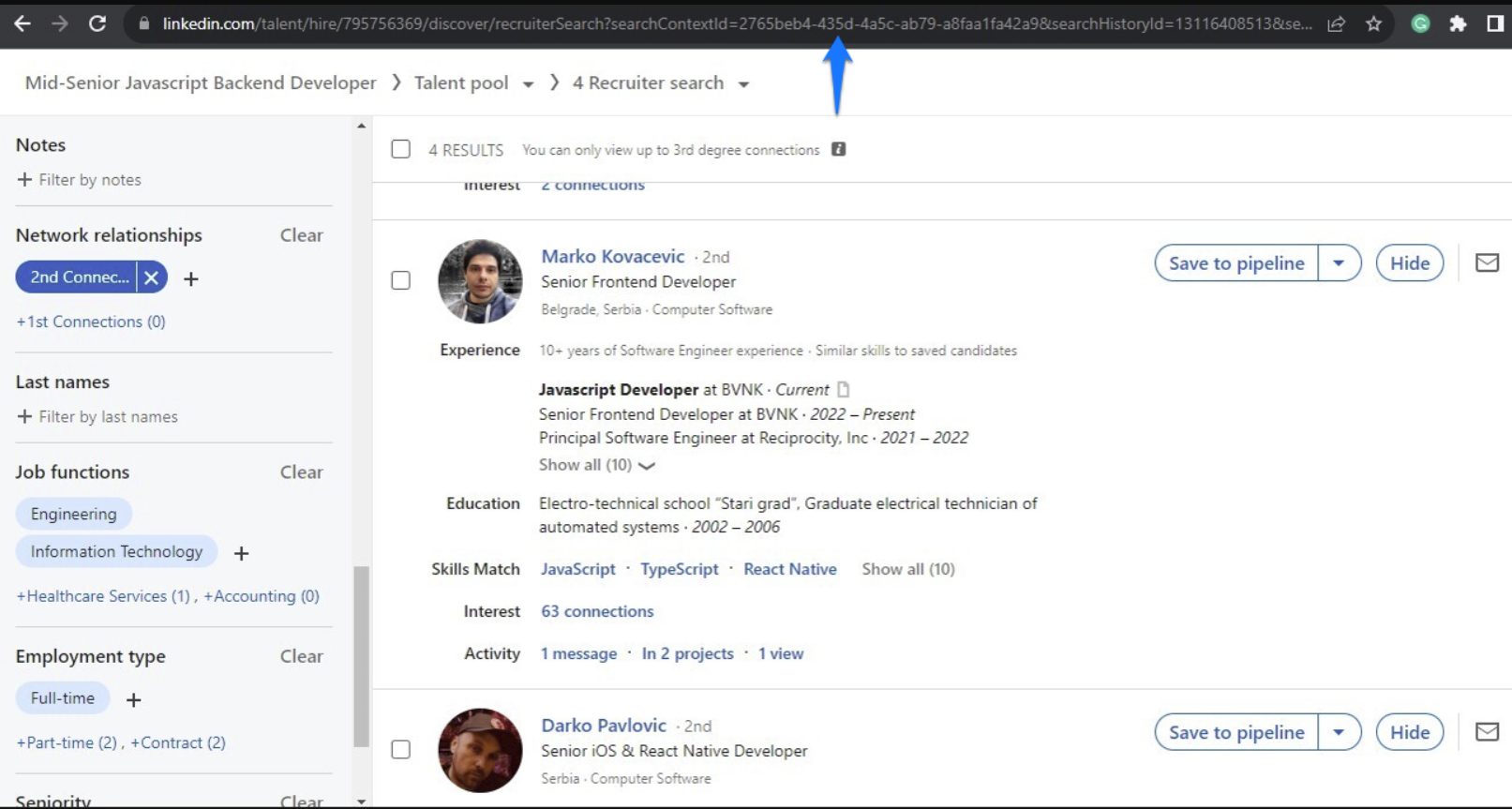 - First things first—head over to LinkedIn! Perform a search in LinkedIn Recruiter or Recruiter Lite. Once you’ve got your search results, copy that URL link. This will be the foundation of your Higher Ranking campaign. 🌐