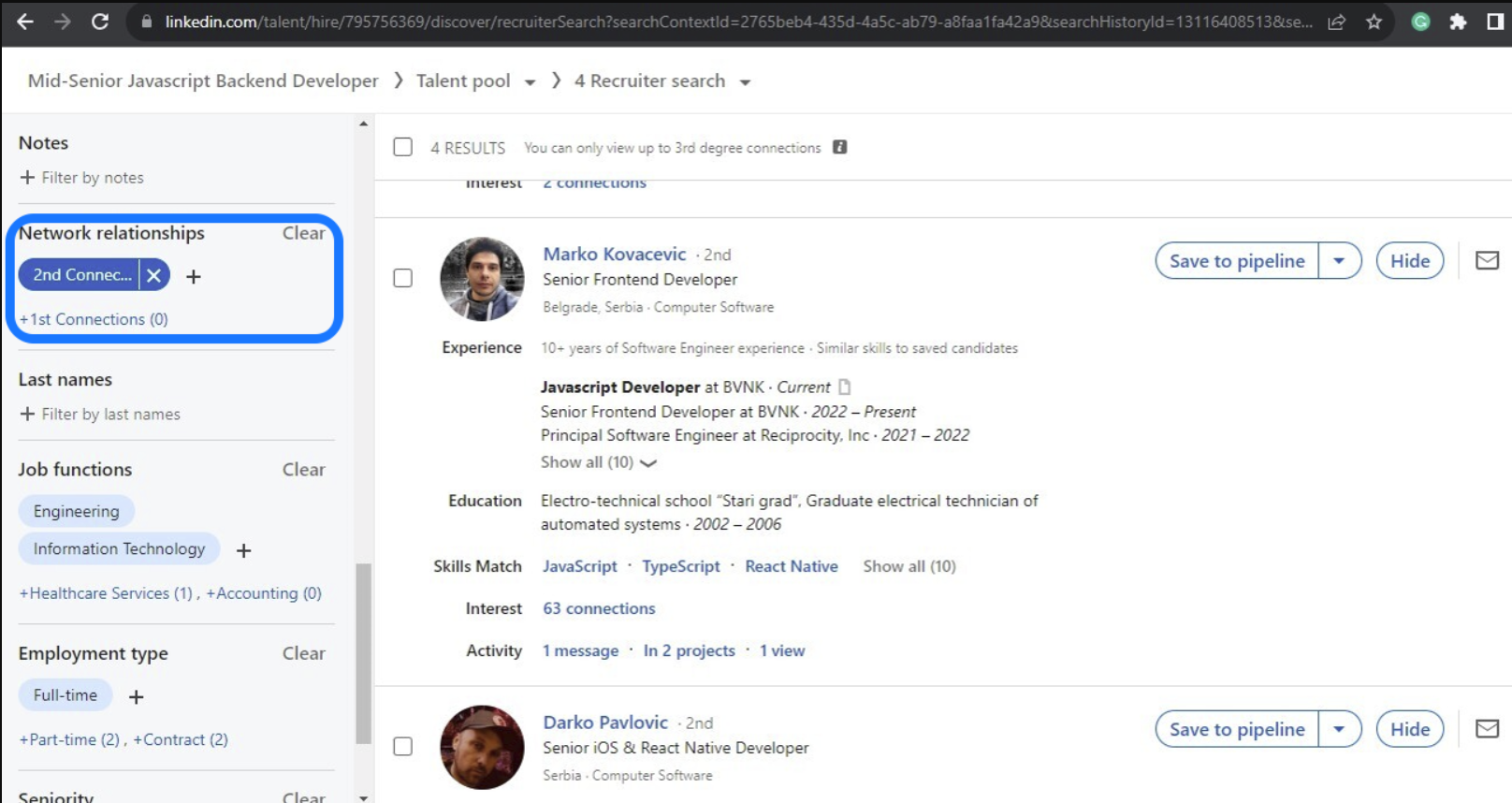 - This part is super important! Make sure the Network Degree connection type matches in both Higher Ranking and LinkedIn Recruiter. Use the Network Relationships filter on LinkedIn Recruiter to confirm this—it's key to targeting the right audience. 🔍